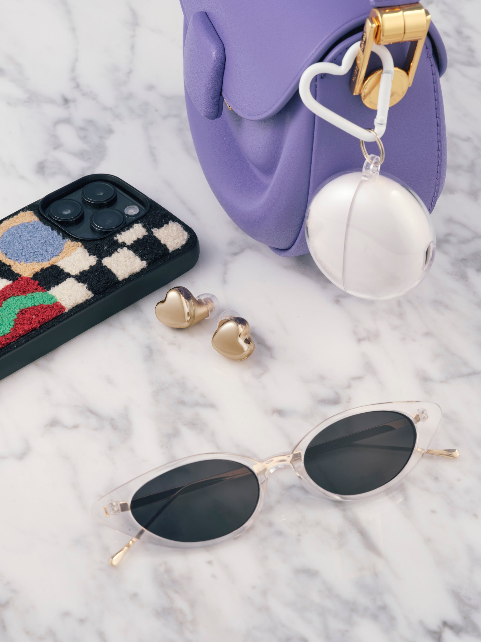 また、コスメと一緒に持ち歩いても汚れや傷がつかないよう、専用のクリアハードケースを同梱。ミニバッグやスマホショルダーに取り付けることができるハート型カラビナもセットにいたしました。