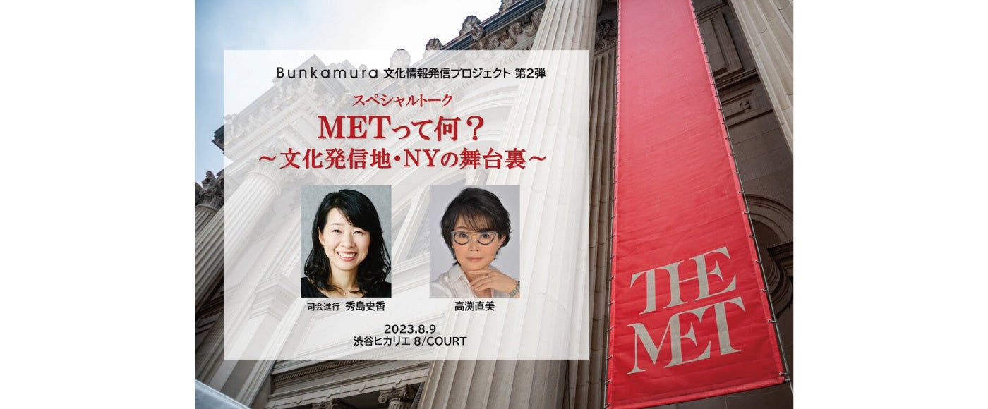 Bunkamura STREAMINGにて無料オンデマンド配信中。2023年8月9日(水)に開催された「スペシャルトーク『METって何?~文化発信地・NYの舞台裏~』」の模様をご覧いただけます。ニューヨークのメトロポリタン美術館で29年間広報担当を務めたPRのスペシャリスト・高渕直美が、貴重な体験談や文化・芸術のPRについて語る、ここでしか聞けない必聴トークイベントです。