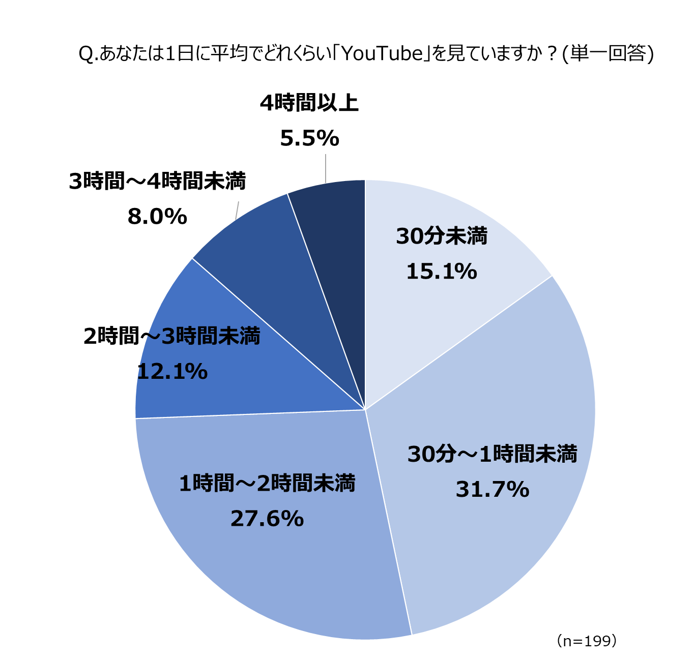 YouTube視聴ユーザーの約5割が「1日あたり1時間以上視聴」と回答