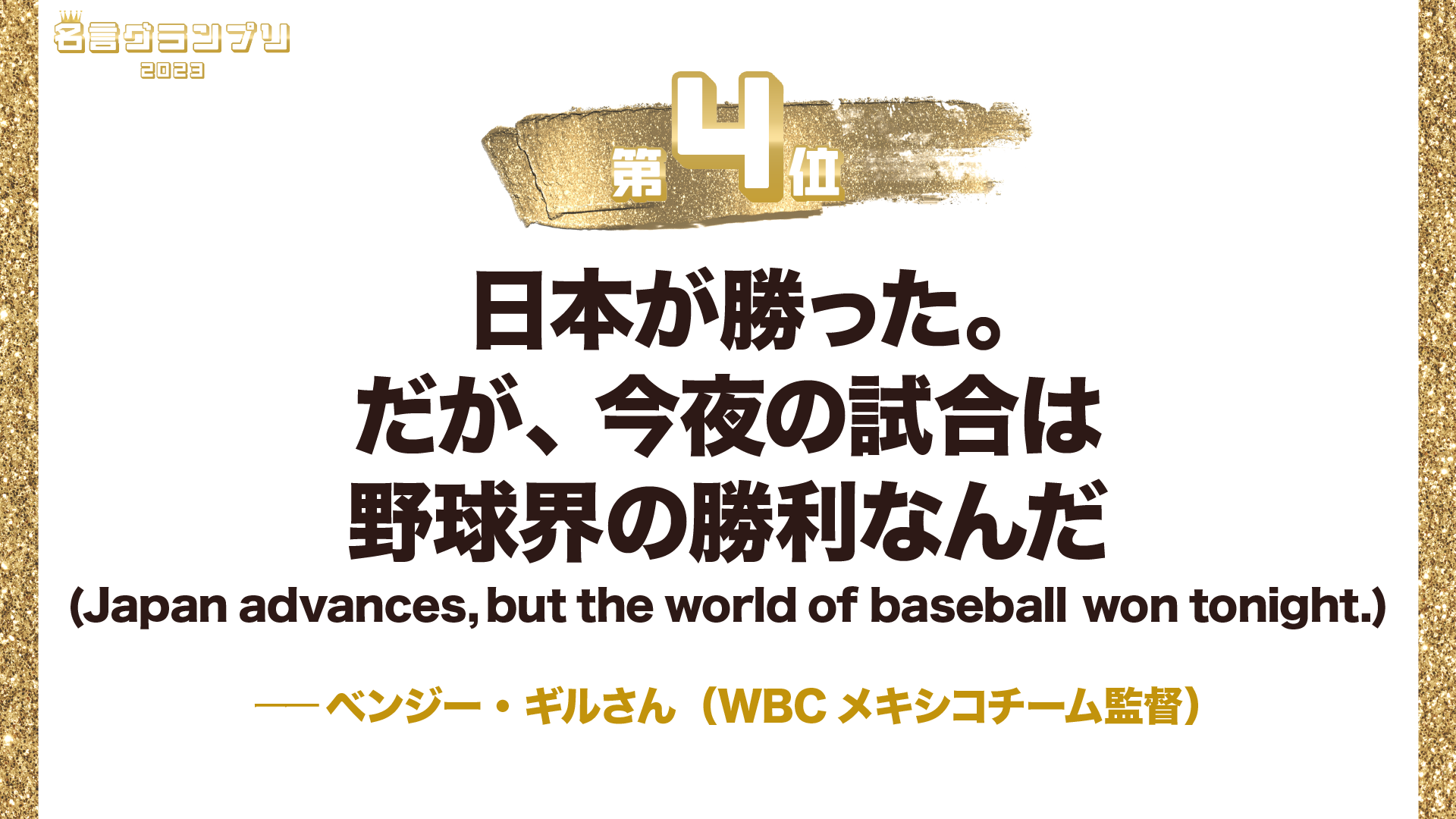 日本が勝った。だが、今夜の試合は野球界の勝利なんだ ―ベンジー・ギルさん(WBCメキシコチーム監督) |