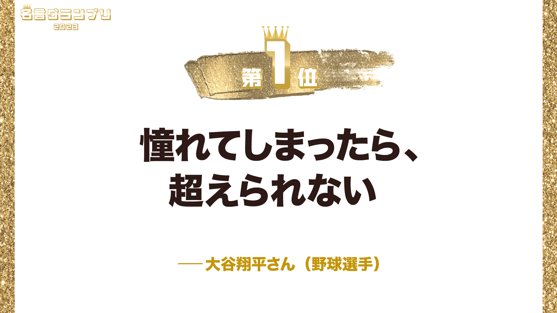 今年のグランプリは、大谷翔平選手の『憧れてしまったら、超えられない』に決定しました。この言葉の数時間後に、アメリカとの決戦を制しWBC優勝を成し遂げた光景は、今思い出しても鳥肌が立ちます。日本が誇る大スターの名言ですが、私たちが聞いても、過去の自分自身を超える、そんな決意をするための勇気をくれる言葉に感じます。そして私自身も、審査会を終えてから『やってみよう』と思うことが増えたんです。そんな言葉のパワーを、この名言たちから感じ取っていただけたら。そして、来年はどんな名言が生まれるのか、楽しみにしています」