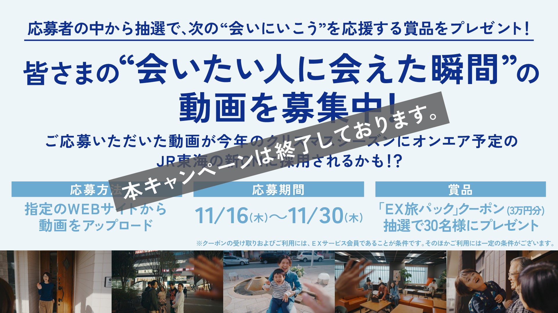 今回のCMに一部使用された映像は、JR東海公式X(@JRCentral_OFL)で11月16日(木)から11月30日(木)の期間で開催したキャンペーンにご応募いただいた映像を使用しております。“会いたい人に会えた瞬間”をテーマに募集し、数多くの動画をお送りいただきました。ご応募いただいた皆さま、ありがとうございました。