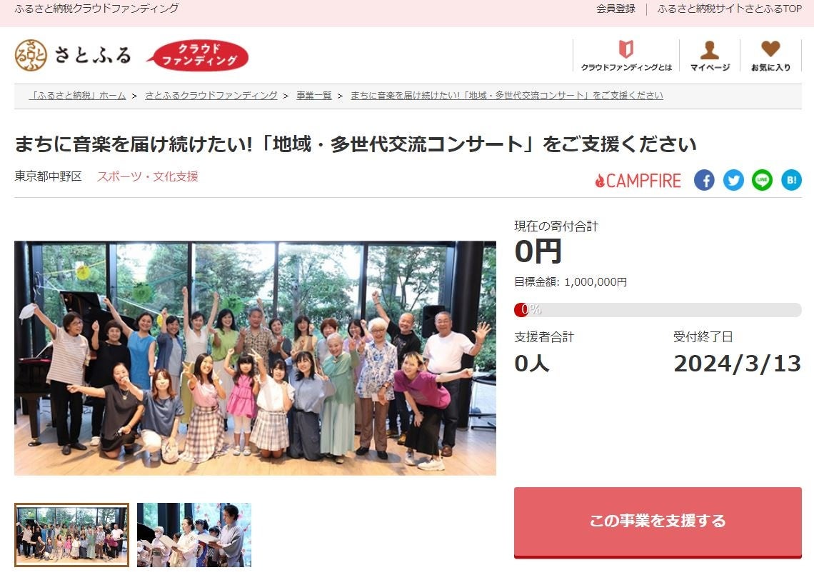 1. まちに音楽を届け続けたい!「地域・多世代交流コンサート」をご支援ください