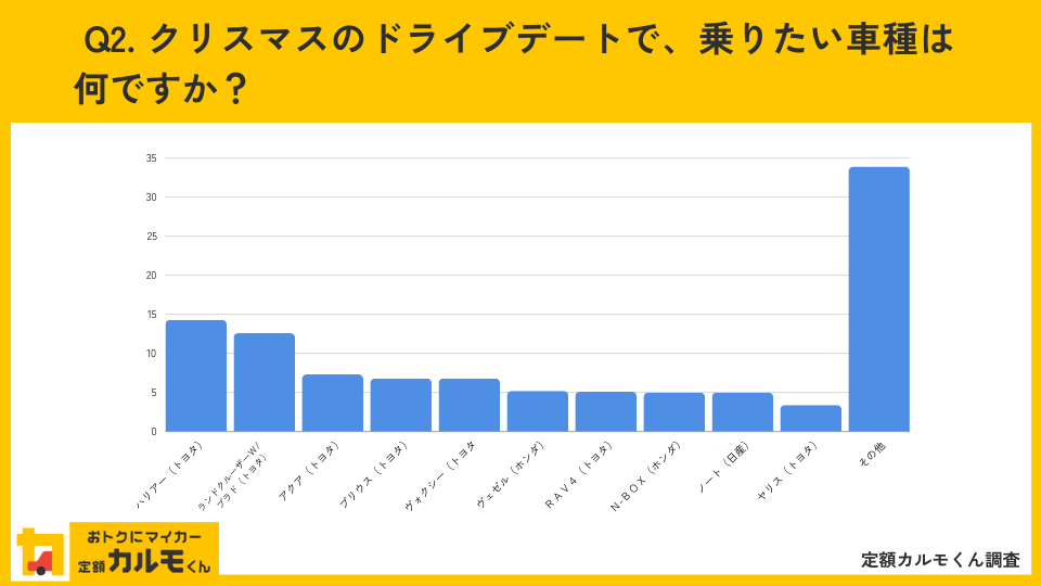 Q2. クリスマスのドライブデートで、乗りたい車種は何ですか?
