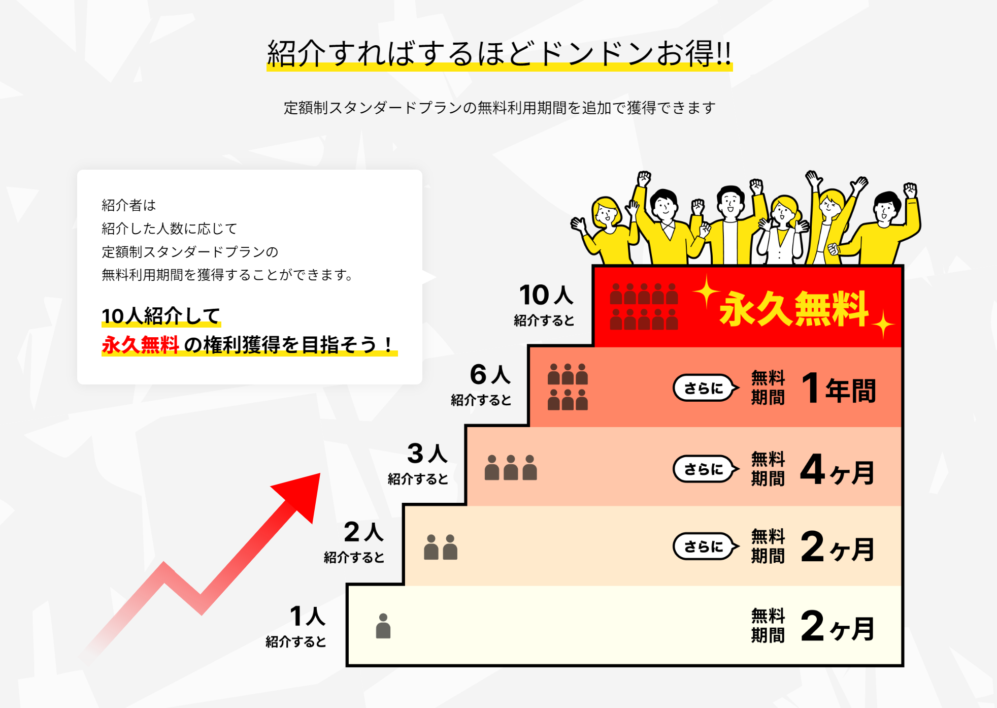 ~定額制スタンダードプランを紹介した人数によって、ユーザーへ無料期間を提供~