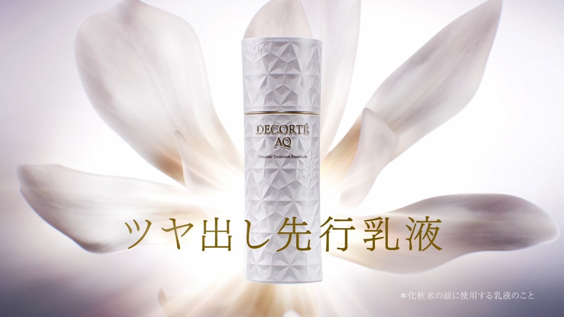 3位は、コーセーの『DECORTE「AQ アブソリュートエマルジョン・ツヤ出し先行乳液」篇』でした。美しい肌の外国人女性のアップが映し出され、機能説明のナレーションと共に、ツヤ出し先行乳液だということを示す機能訴求型のCMです。