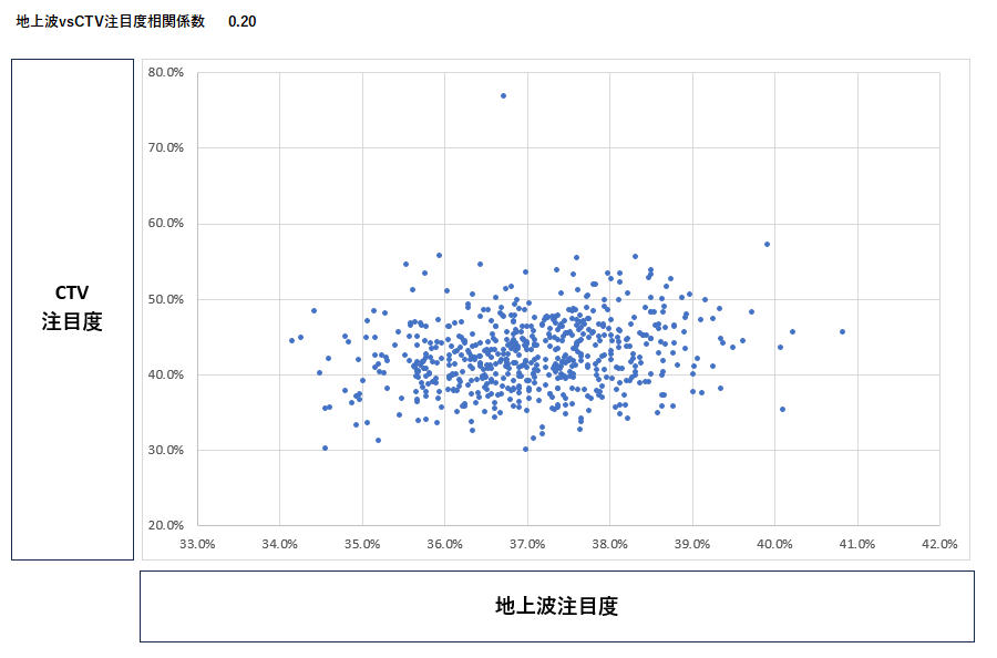 図2: 地上波とCTV配信でのCM注目度の散布図
