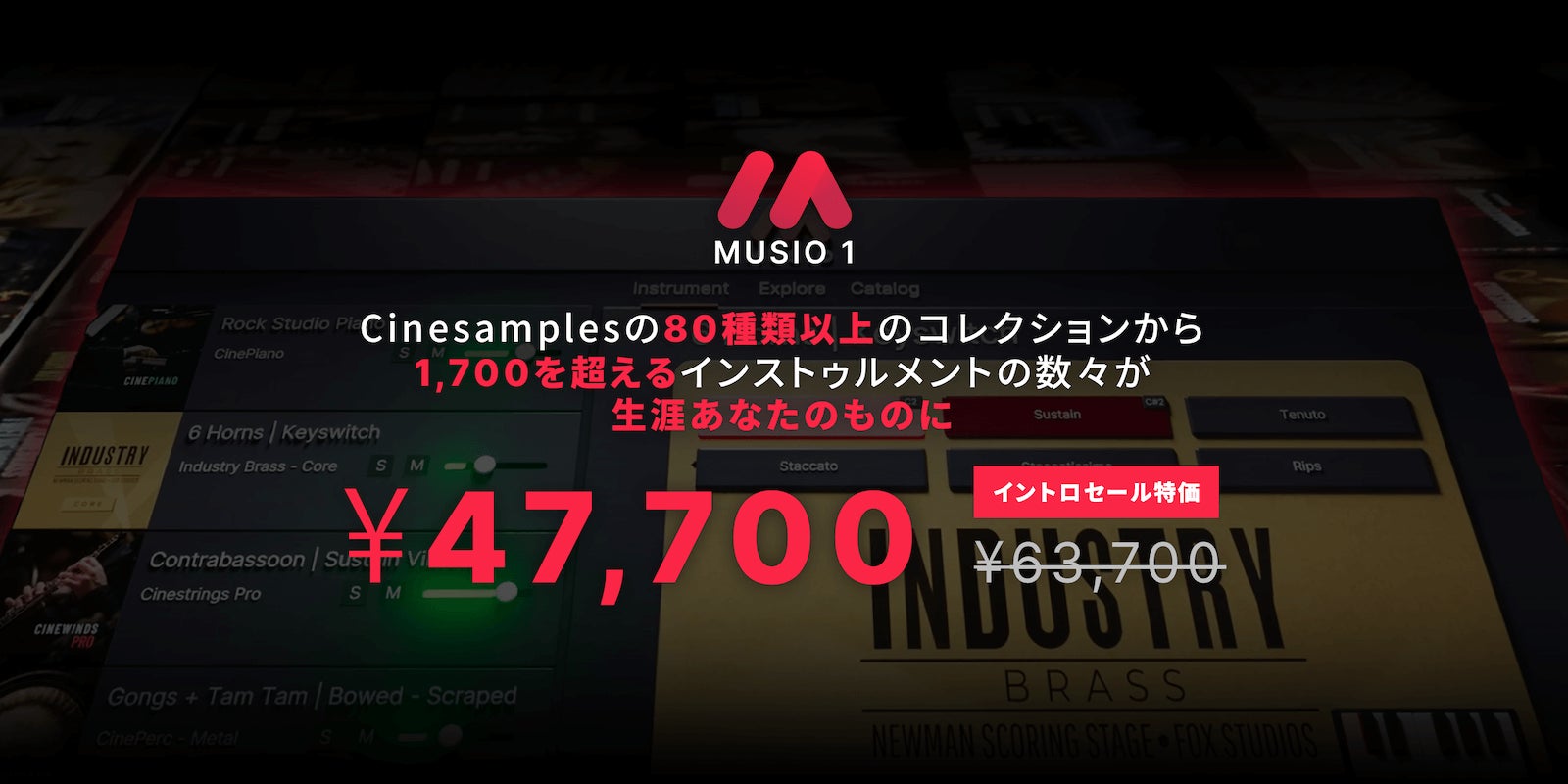 Musio1は世界中のプロアーティストやコンポーザーに愛用されているサンプルライブラリメーカーCinesamplesが開発した80種類以上のタイトルとSONY MGM STUDIO収録ライブラリを含む1,700を超える楽器を集結させたバンドルの永続版ライセンスです。これまでにリリースされた全てのMusioインストゥルメントに加え、2023年内にリリースされるLiveカタログ掲載音源を永続版としてお使い頂けます。