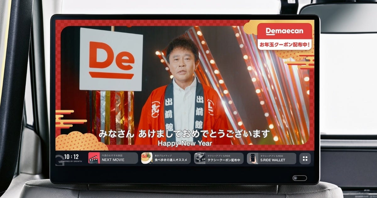 都内最大級※1のタクシーサイネージメディア「THE TOKYO TAXI VISION GROWTH」(以下、「GROWTH」)を運営する株式会社ニューステクノロジー(本社:東京都港区、代表取締役:三浦純揮、以下当社)は、株式会社出前館(本社:東京都渋谷区、代表取締役社長:藤井英雄、以下出前館)のCDO(チーフ・出前・オフィサー)としてTVCMに出演中のダウンタウン・浜田雅功さんが登場するシートベルト着用啓発動画を元旦より放映いたします。