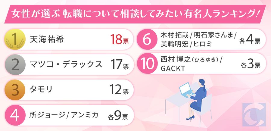【転職で悩んだことがある女性250人に聞いた】転職について相談してみたい有名人ランキング!