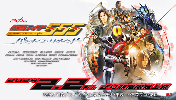 『仮面ライダー555』放送20周年を記念し製作される、2024年2月2日公開予定のVシネクスト作品。舞台は『仮面ライダー555』物語終了後の世界、主人公 乾巧(いぬい たくみ/演:半田健人)は進化した変身ベルト「ファイズドライバーNEXT」を使用し「仮面ライダーネクストファイズ」に変身する。