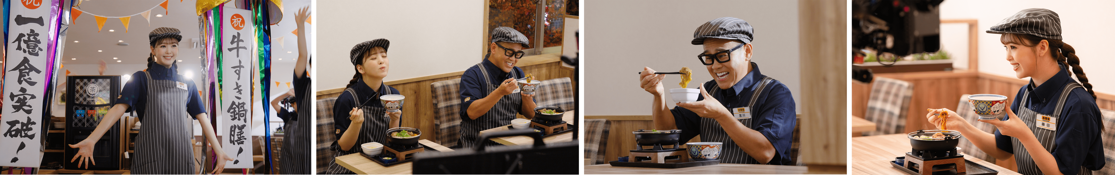TV CM撮影の際、宮川さんと藤田さんに「牛すき鍋膳」1億食突破に関する感想を伺いました。インタビューの様子は特設サイト( https://www.yoshinoya.com/special/gyusuki10th/ )でご覧いただけます。