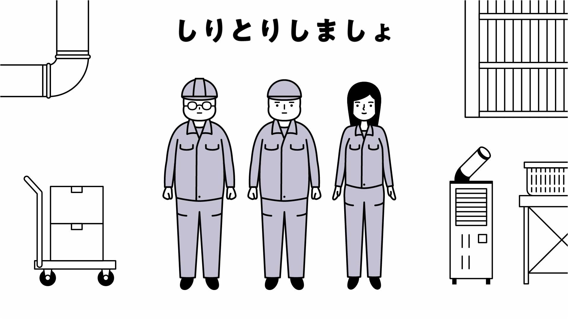 「しりとりしましょ」で始まり、それぞれの現場で必要となる商品を「しりとり」でコミカルに紹介しています。