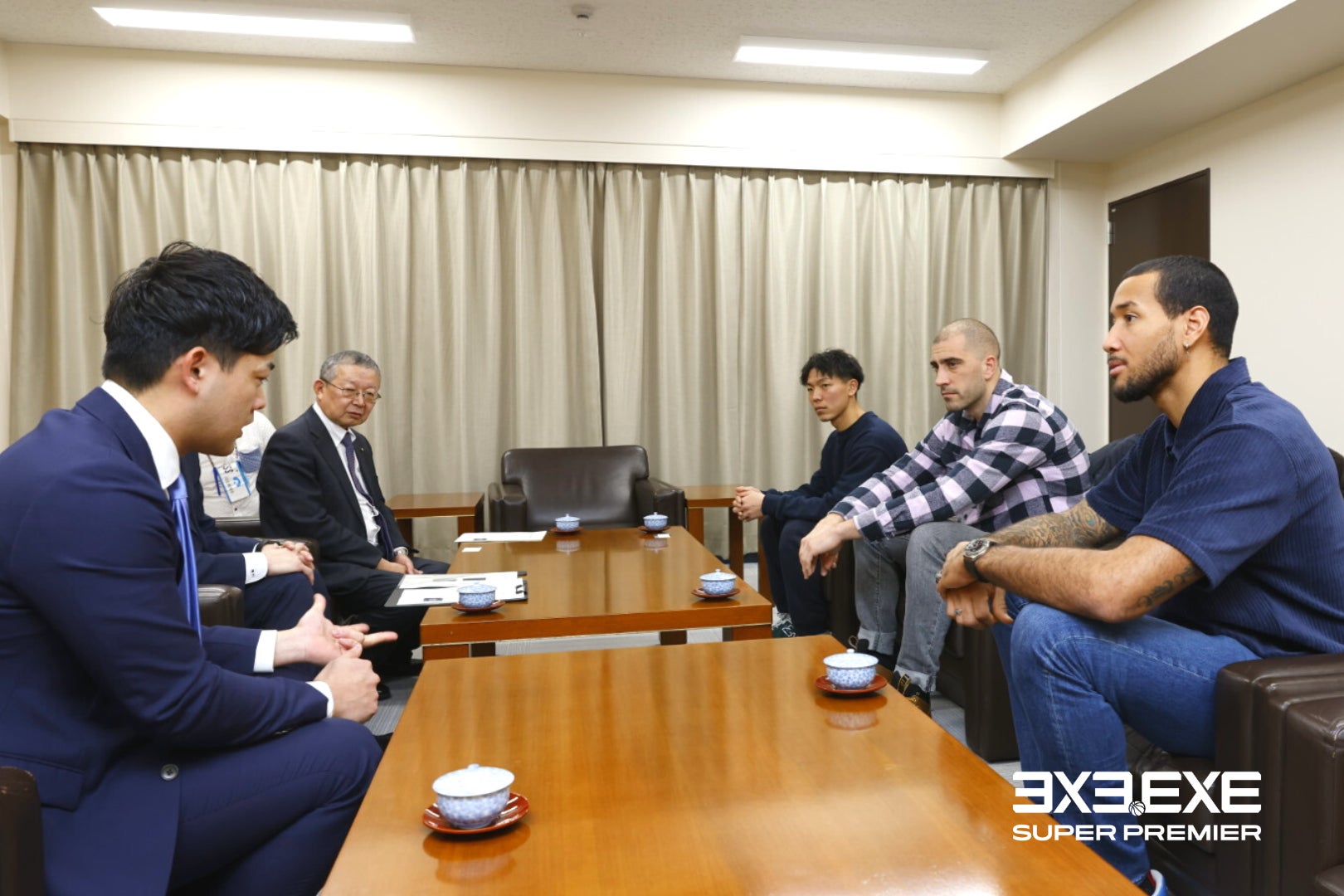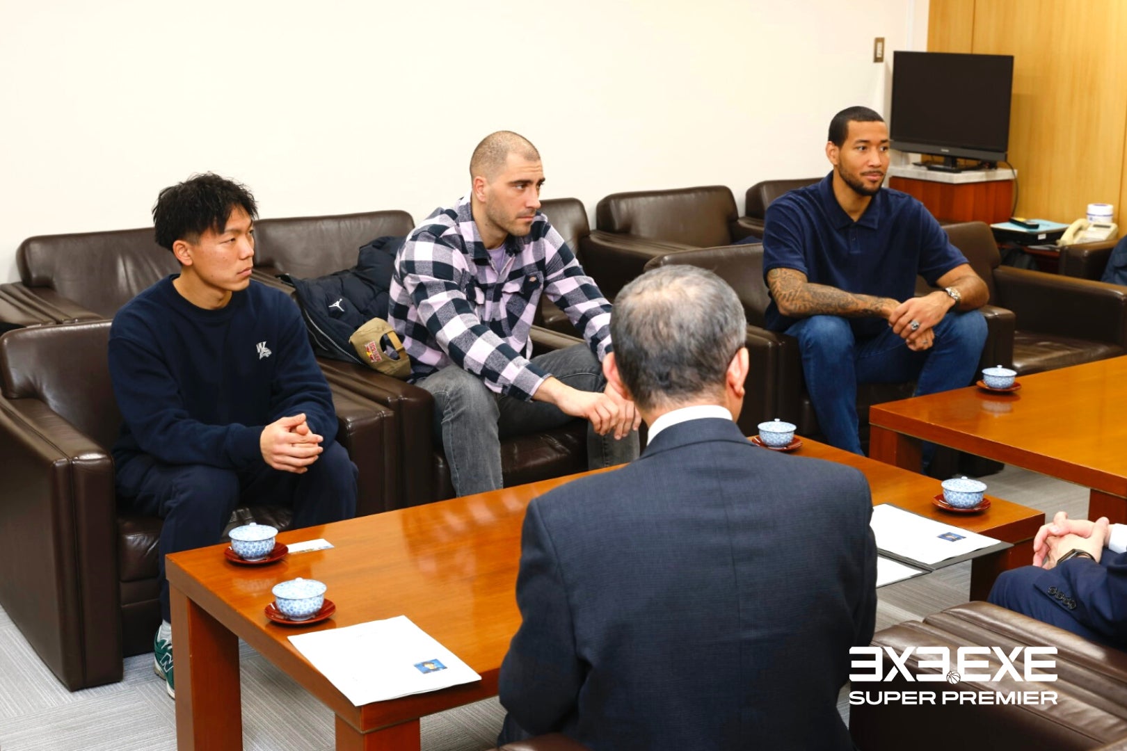 2024年1月12日(金)に、翌日1月13日から開催される3人制バスケットボールの新設リーグ『3×3.EXE SUPER PREMIER』の出場選手3名が、宮城県仙台市・藤本章副市長を表敬訪問し、同大会についてご報告いたしました。