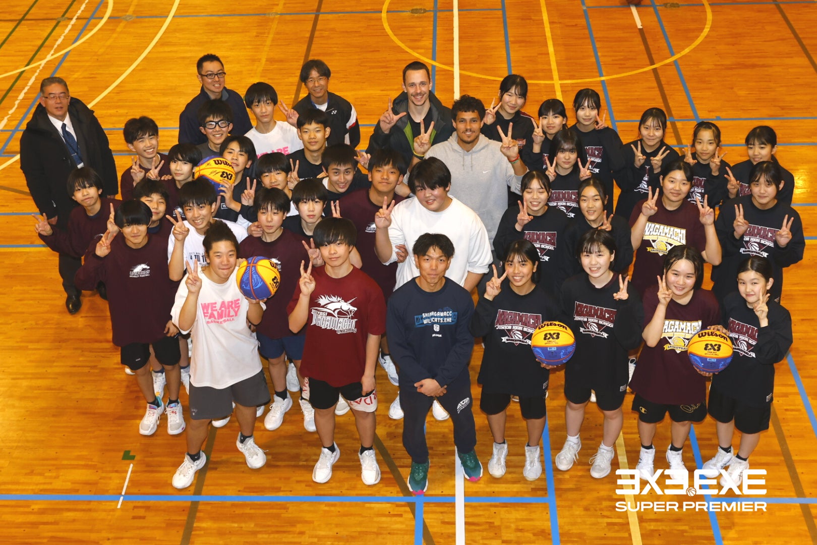 同日、仙台市立長町中学校のバスケットボール部を訪問し、60分のクリニックを実施いたしました。本クリニックには、引き続き伊藤尚人選手(SHINAGAWA CC WILDCATS.EXE)と、マット・ケーニヒ選手(ALICE SPRINGS CENTRALS.EXE(オーストラリア))、ボー・コスカック選手(NUNAWADING SENTINELS BLUE.EXE(オーストラリア))の3名が参加。選手たちによる実演と、3×3のエキシビジョンなどを実施しました。3×3を初めて体験する学生も多く、また海外選手との交流ができたことで非常に盛り上がりました。