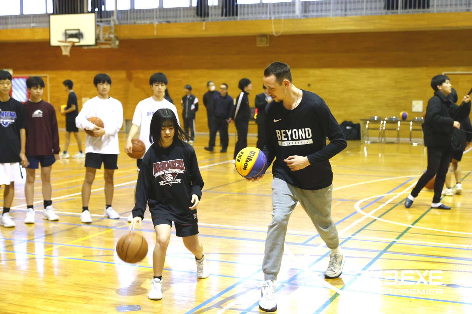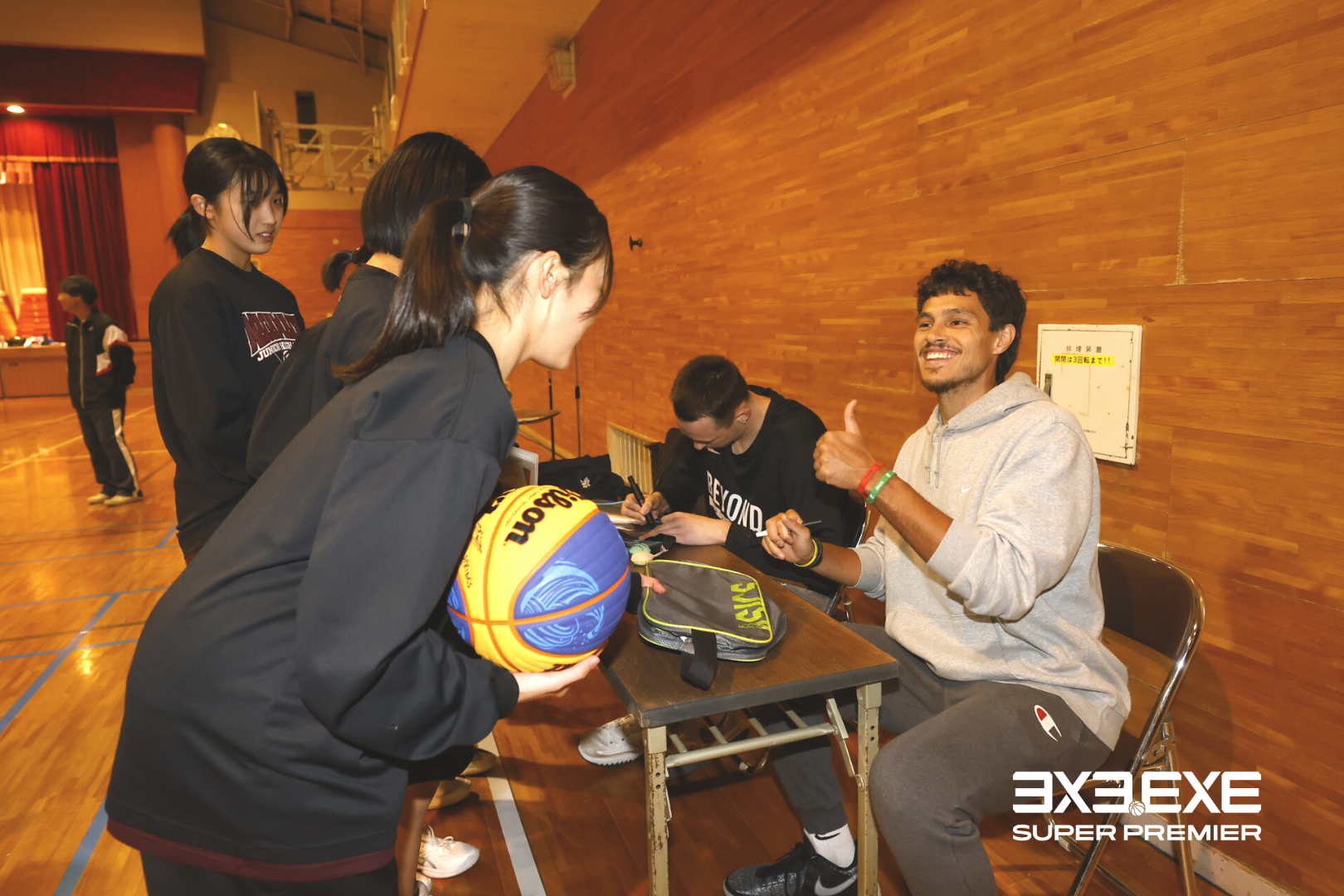 同日、仙台市立長町中学校のバスケットボール部を訪問し、60分のクリニックを実施いたしました。本クリニックには、引き続き伊藤尚人選手(SHINAGAWA CC WILDCATS.EXE)と、マット・ケーニヒ選手(ALICE SPRINGS CENTRALS.EXE(オーストラリア))、ボー・コスカック選手(NUNAWADING SENTINELS BLUE.EXE(オーストラリア))の3名が参加。選手たちによる実演と、3×3のエキシビジョンなどを実施しました。3×3を初めて体験する学生も多く、また海外選手との交流ができたことで非常に盛り上がりました。