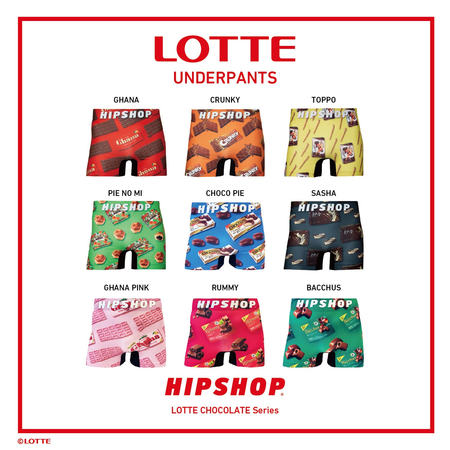 バレンタインがもっともっと“楽しい”イベントになるように、みんな大好き!ロッテのお菓子9種類をHIPSHOPらしいデザインに落とし込み、あげても楽しい!もらっても嬉しい!ずっと纏っていても溶けない“おかしな”アンダーパンツとSOCKSに仕上げました。