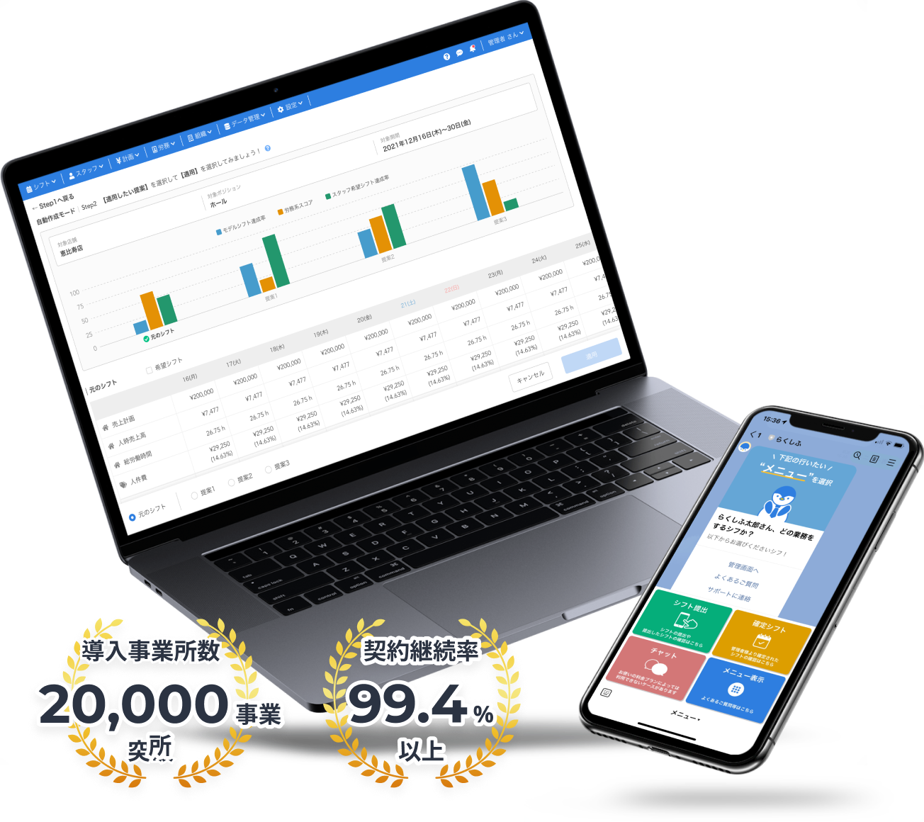 これまでは社員が日々シフト作成作業に追われたり、欠員の際は現場に入って穴埋めしなければならない場面が多々ありましたが、「らくしふ」の導入によりシフト管理にかかっていた作業がおおよそ週35分程度削減され、1ヶ月に換算すると2.5〜3時間の余剰時間を作ることができると予想されます。