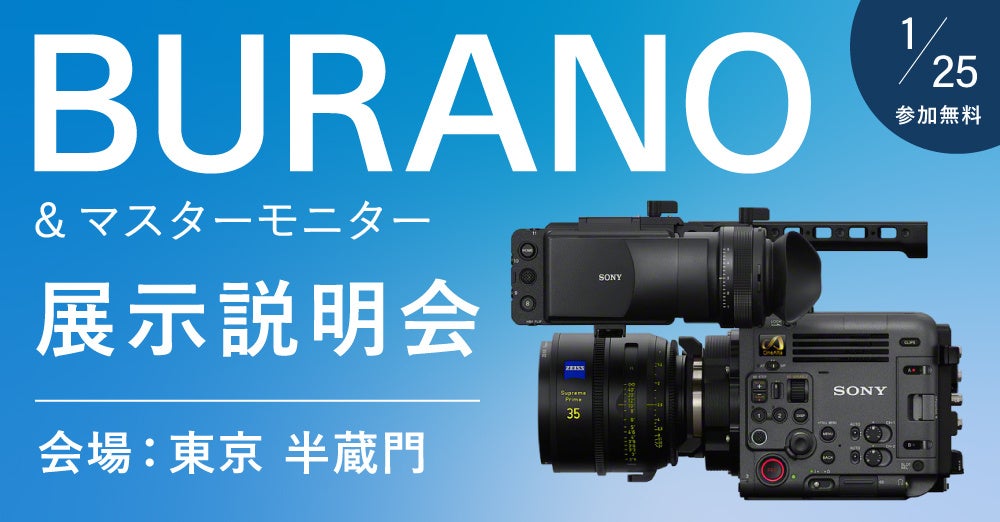 本展示説明会では2024年春発売予定のソニーの新製品 CineAltaカメラ「BURANO」と31型4K液晶マスターモニター「BVM-HX3110」について、ソニー担当者より特長やCineAltaカメラ「VENICE」シリーズとの違いについて詳しくご紹介します。