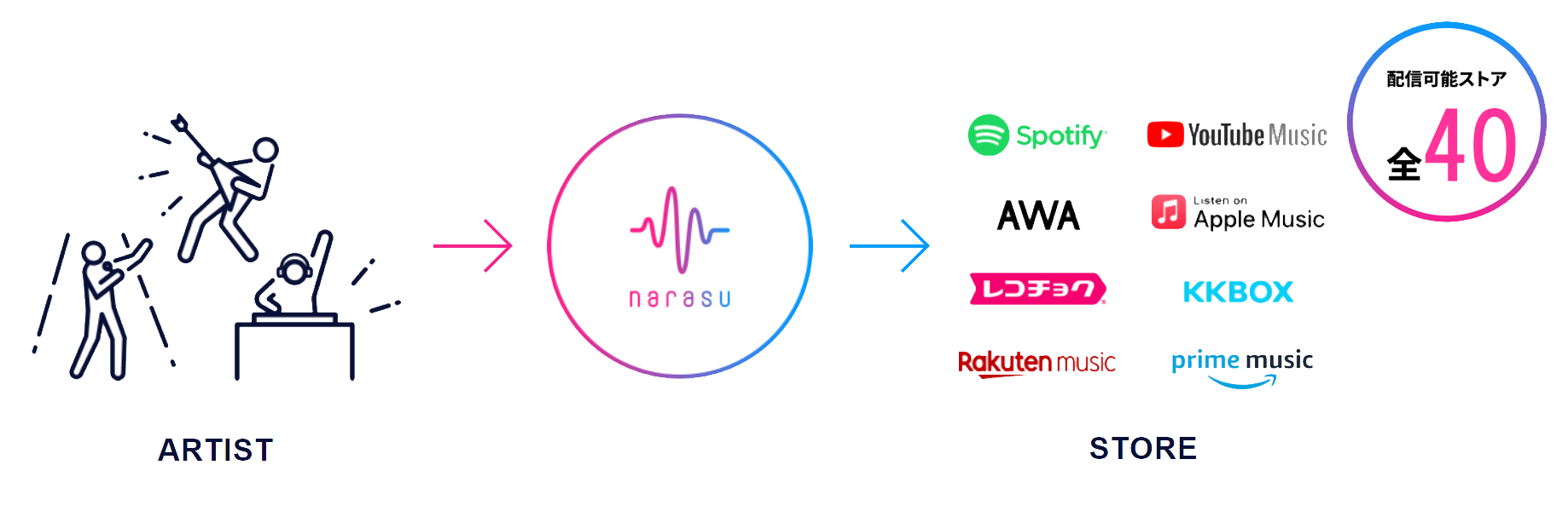 楽曲を発信するアーティストの皆さまにさらにお得な機会をご提供すべく、新たに生まれ変わる「narasuにぜひご注目ください。