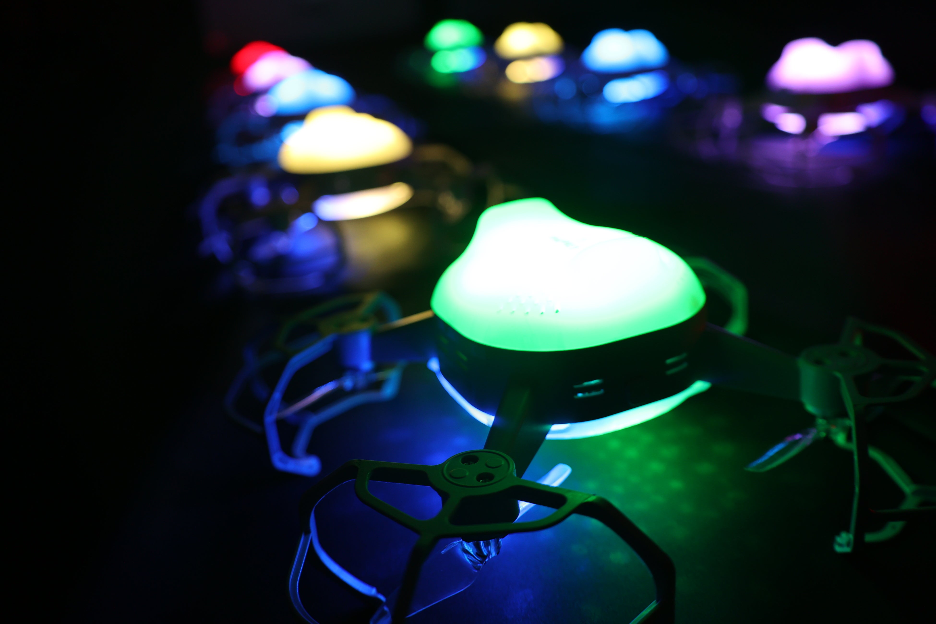 インドアドローンショーの魅力は天候のリスクがない点やコストだけではありません。インドアドローンショーは音楽との相性がよく、歌やダンスなどほかのエンターテインメントとも組み合わせることができます。また航空法など法律の規制を受けないため、準備~実施まで短期間で行うことが可能です。ほかにも小さなスペースで開催できる点など、屋外のドローンショーにはないメリットや魅力がたくさんあります。