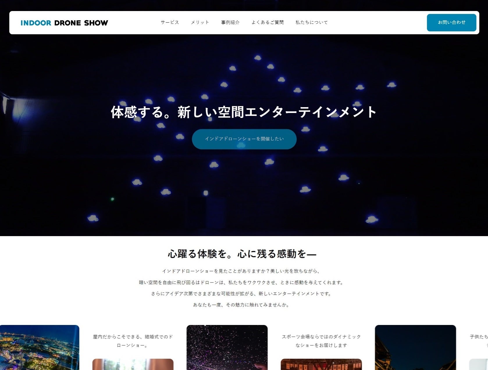 インドアドローンショーについては新しくオープンした下記サイト『インドアドローンショー.jp』で詳しく紹介していますので、ぜひ一度アクセスしてください!
