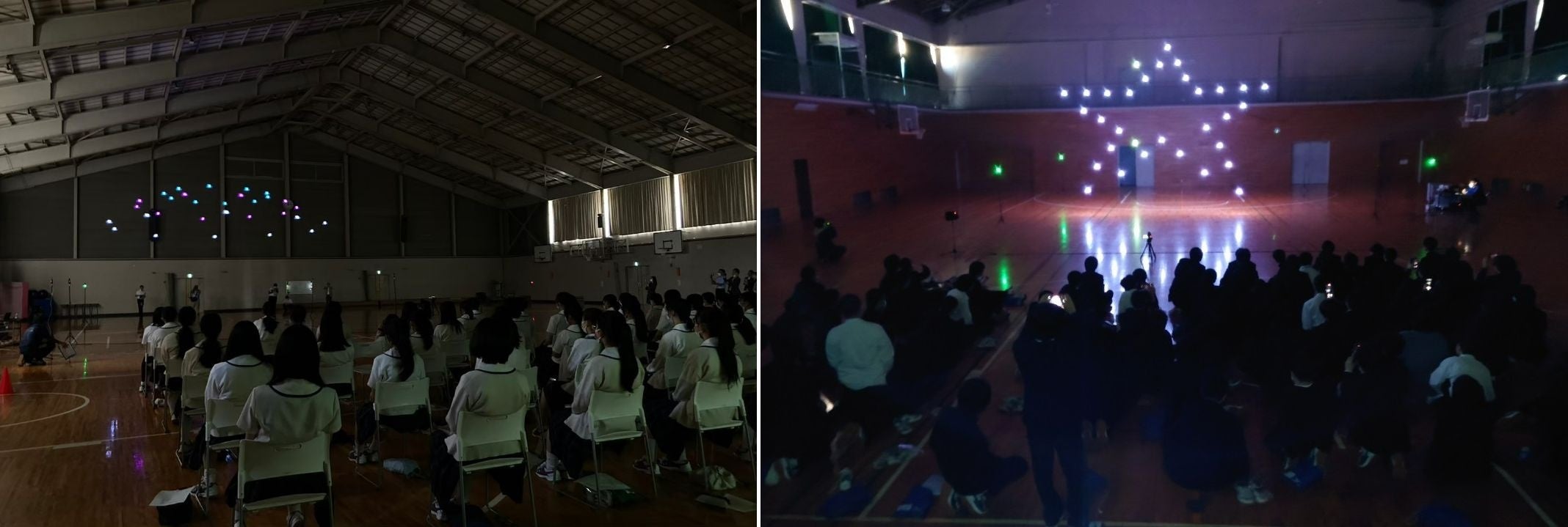 またインドアドローンショーは教育コンテンツとしても非常に優れています。中学生や高校生を対象に行ったプログラムでは実に9割以上の生徒が満足したと答え、新しい技術にも関心を示しています。