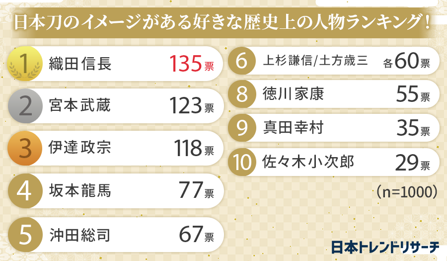 日本トレンドリサーチ・日本刀のイメージがある好きな歴史上の人物に関する調査