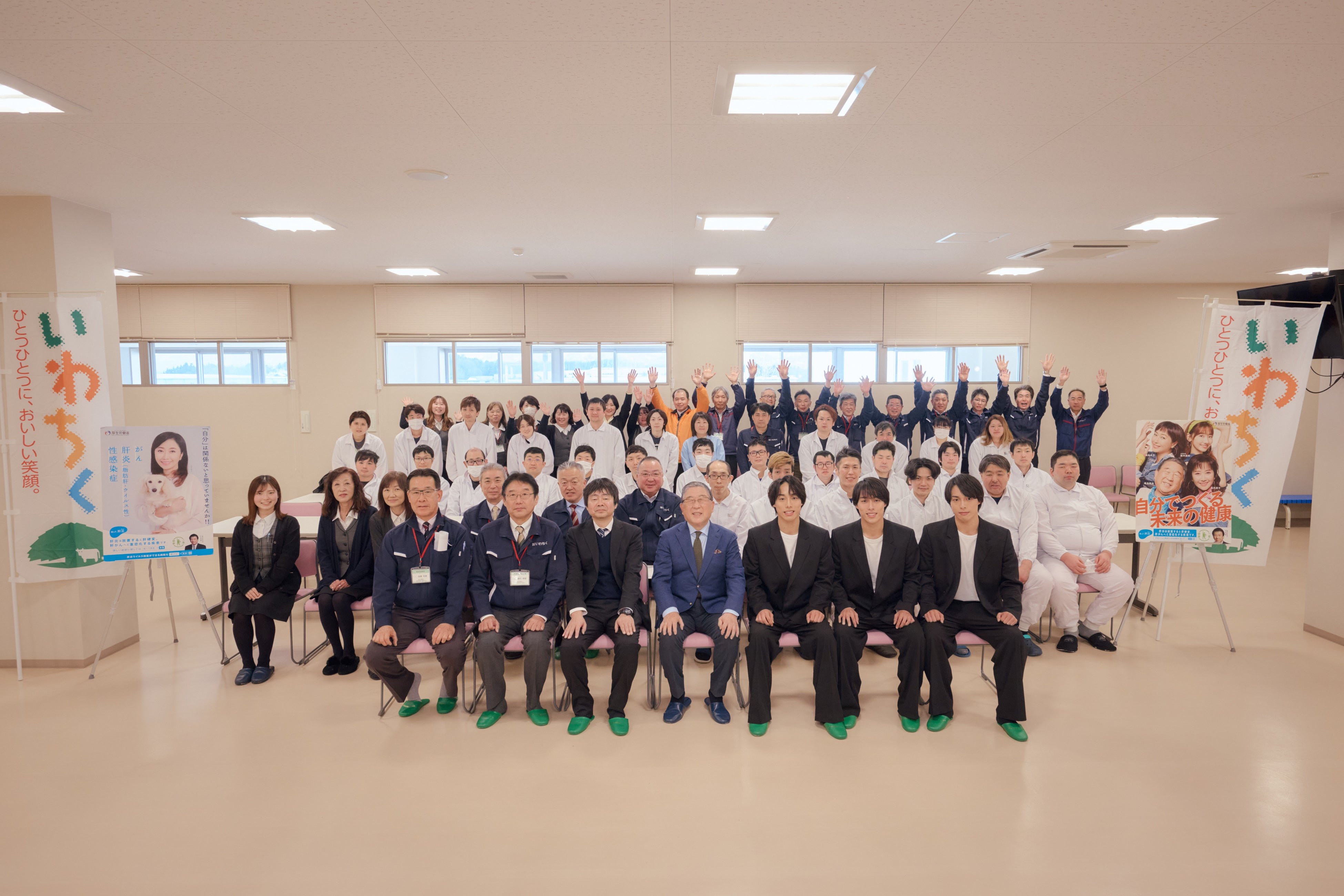 この度1月30日(火)に、「知って、肝炎プロジェクト」肝炎対策広報大使を務める徳光和夫氏と一卵性三つ子のインフルエンサー佐藤三兄弟が岩手県にある産地食肉センターの株式会社いわちくを訪問し、“ウイルス性肝炎”をテーマに、経営陣との対談や、従業員の皆さんに向けたトークイベントを実施しました。