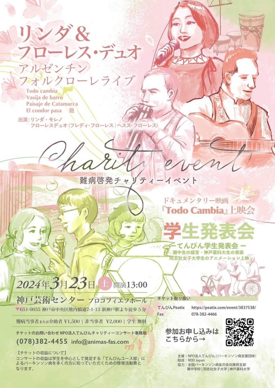 パーキンソン病をはじめ難病患者を支援・サポートするNPOてんびん主催のイベント&映画・音楽コンサートを3月23日(土)に神戸芸術センターにて実施します。楽しみながら病のことも学べる貴重な体験を是非。どなたでもご参加できます。お気軽にご来場ください♪