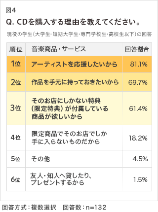 ■学生がCDを購入する理由は、『アーティストを応援したいから』(81.1%)が最多
