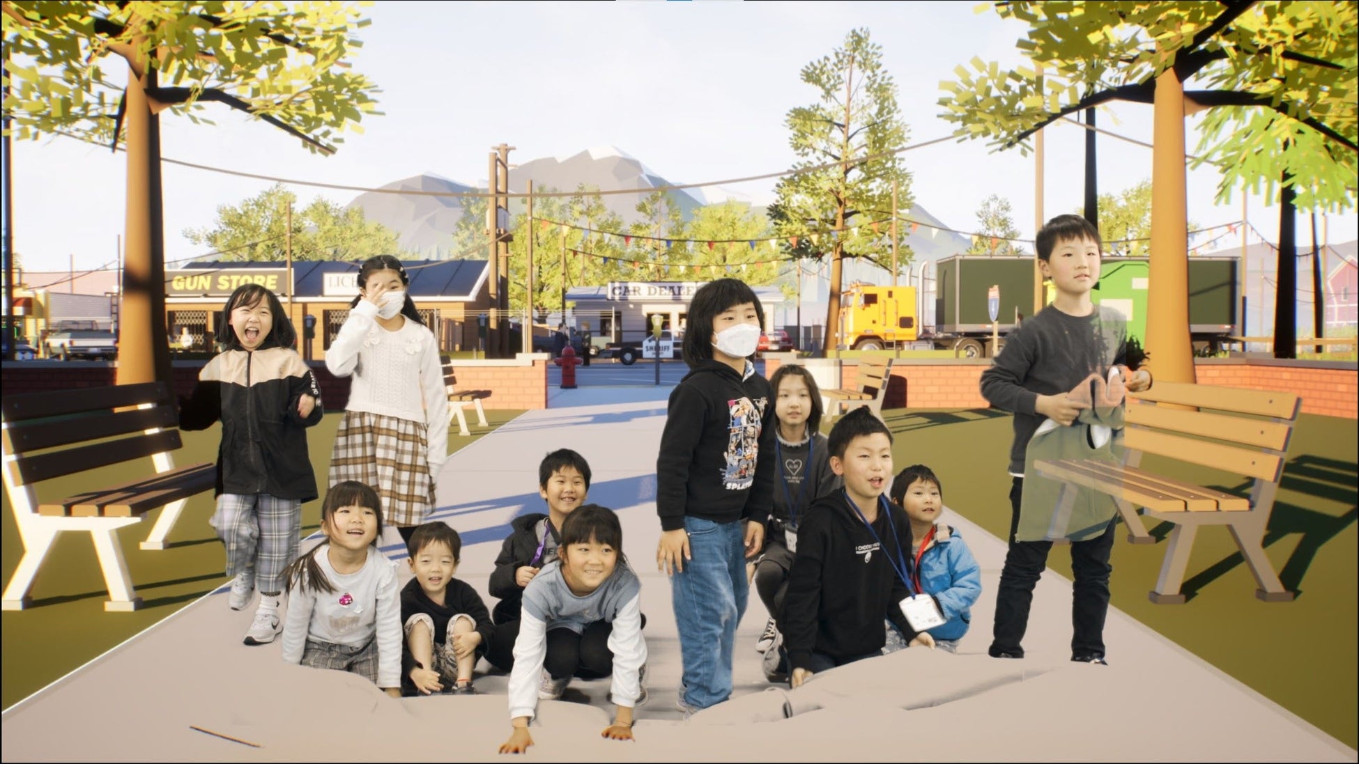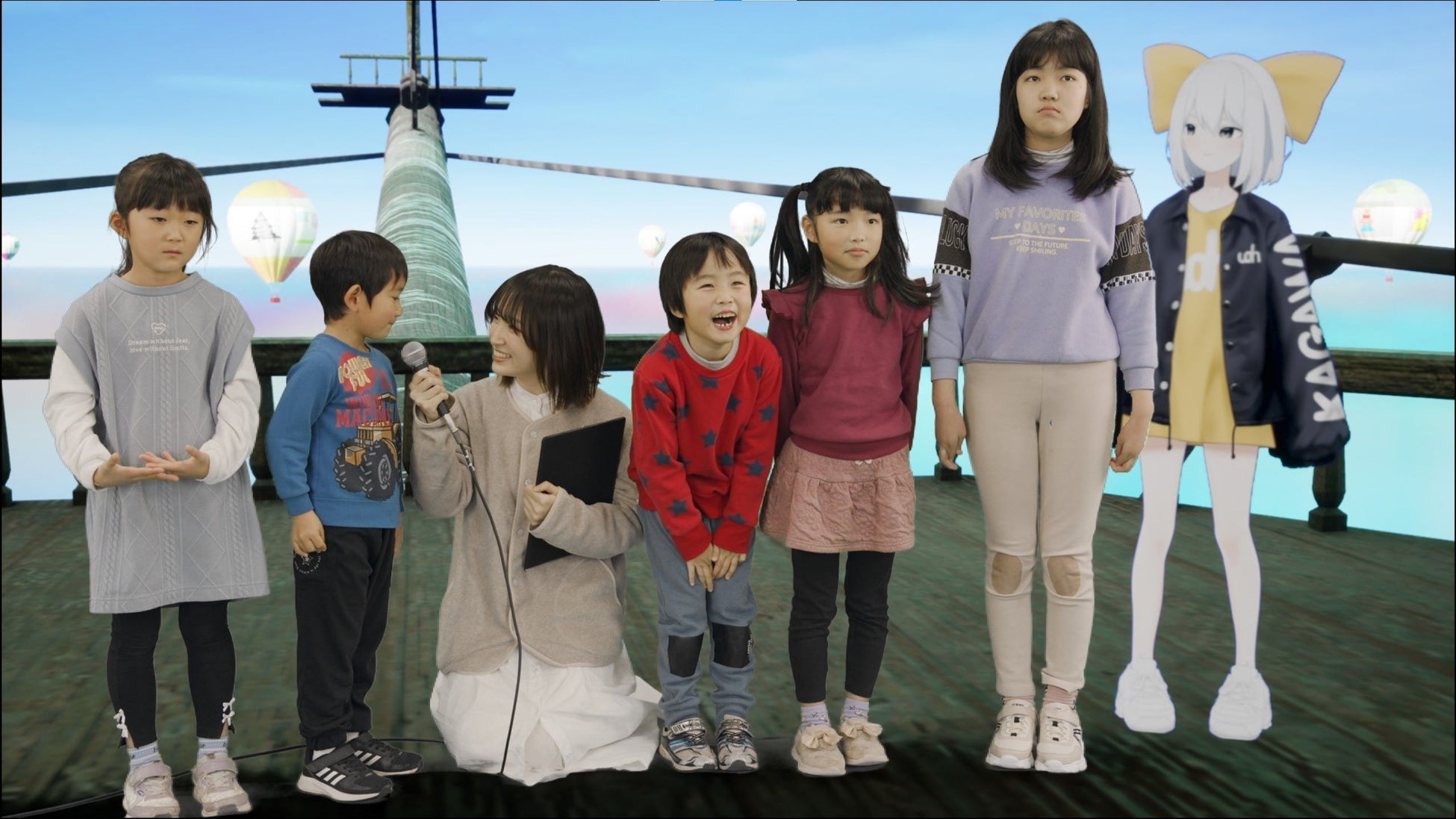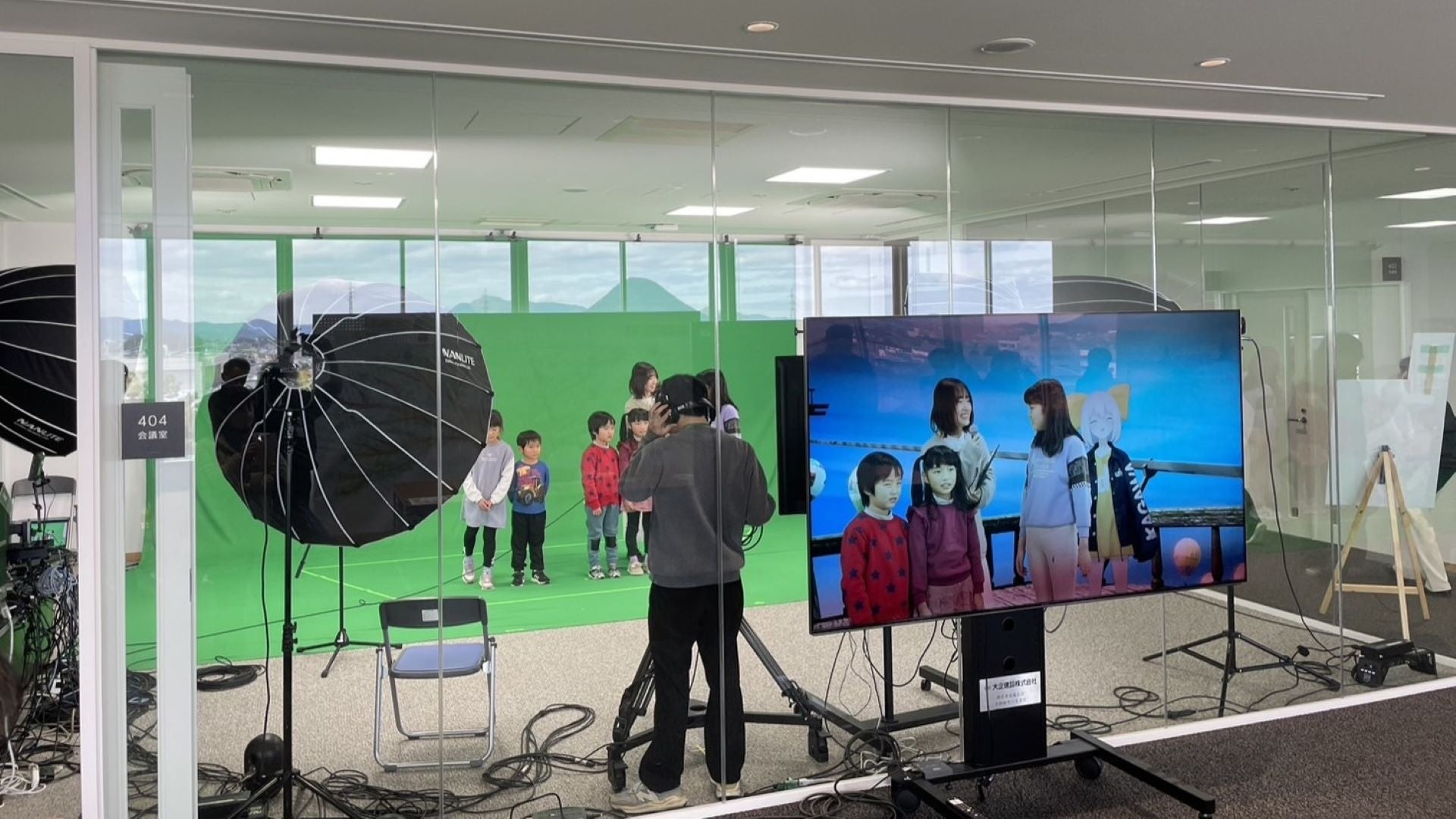 VLSのリアルタイムCG合成システムを善通寺市役所内の会議室へ持ち込み、CGによって作られたバーチャル空間にリアルタイムでイベント参加者を合成した。また、イベント参加者だけでなく、香川県ご当地Vtuber白越いりこもリアルタイム合成することで、Vtuberとの会話も楽しめるバーチャル空間を作り出した。