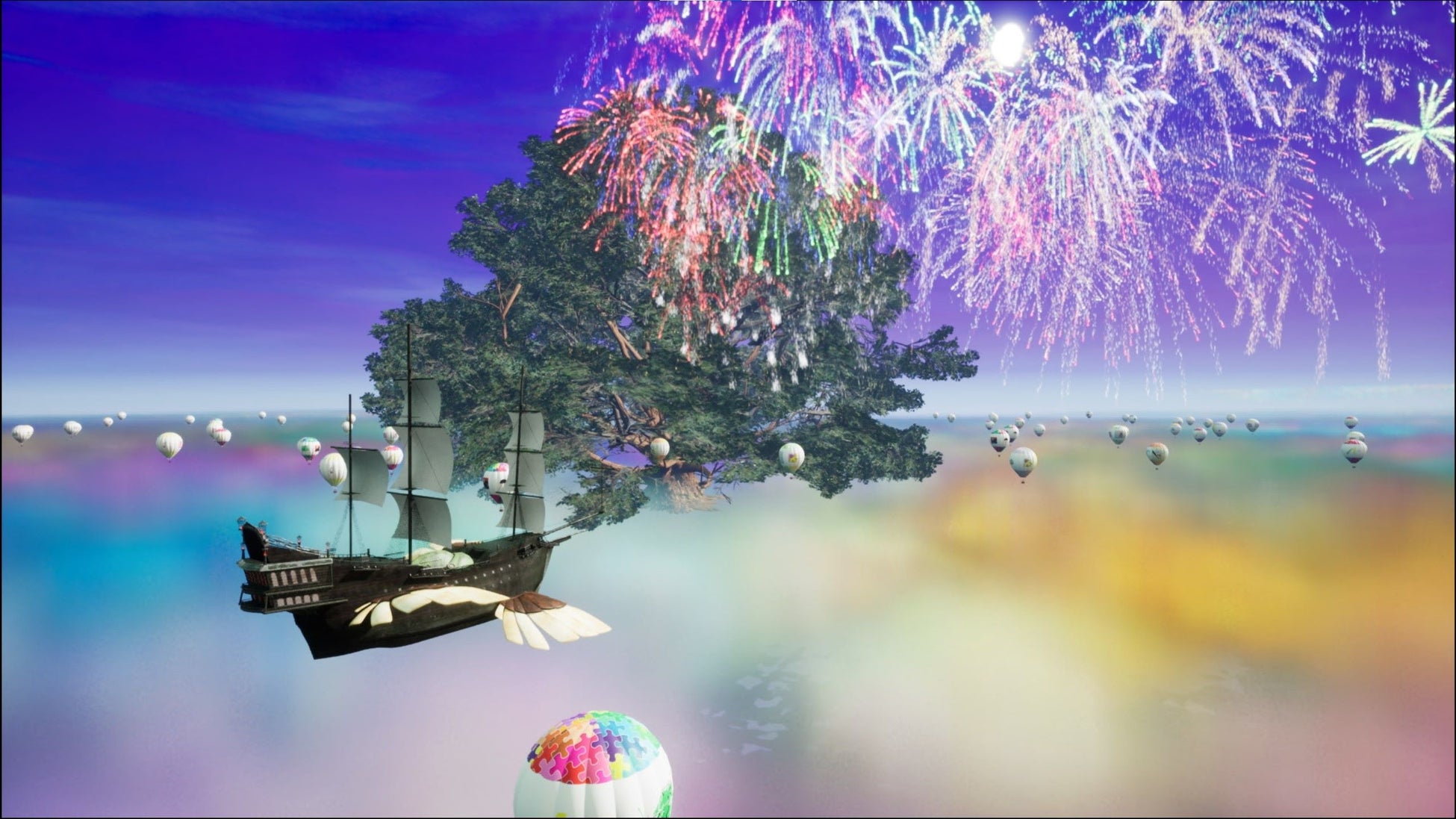来への旅」。CG合成により大空に浮かぶ“宙船”の世界が目の前に広がる。CG空間で宙