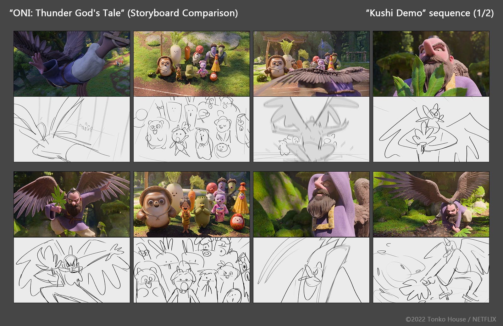 さらに、私が『ONI』で手掛けたストーリーボードを用いて、ストーリーにおける画面演出の技術についても具体的に説明します。