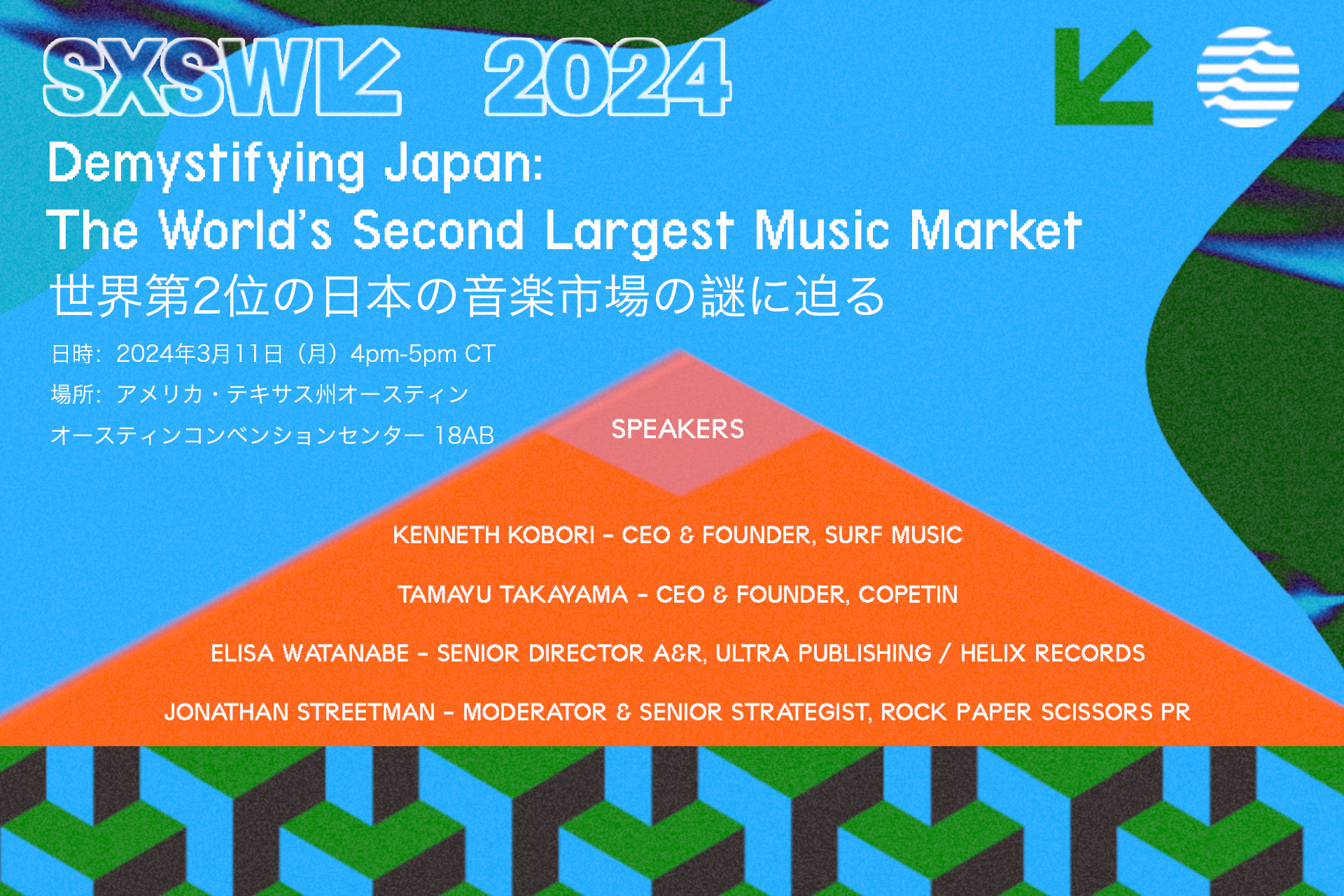 SURF Musicが登壇するパネルは、現地時間3月11日(月)にオースティンコンベンションセンターで行われる「Demystifying Japan: The World’s Second Largest Music Market (世界第2位の日本の音楽市場の謎に迫る)」です。パネリストには、SURF Musicファウンダー兼CEO・小堀ケネスに加え、CopetinのTamayu Takayama氏、Ultra Publishing/Helix Recordsのエリサ・ワタナベ氏も参加。世界第2位のマーケットシェアを持つ日本の音楽業界の特異性や特徴について語り、欧米のコンポーザーやアーティストがなぜこぞって日本のマーケットに参入したくなるかを説明します。進行役は、アメリカの音楽テック企業・Rock Paper ScissorsのJonathan Streetman氏が務めます。