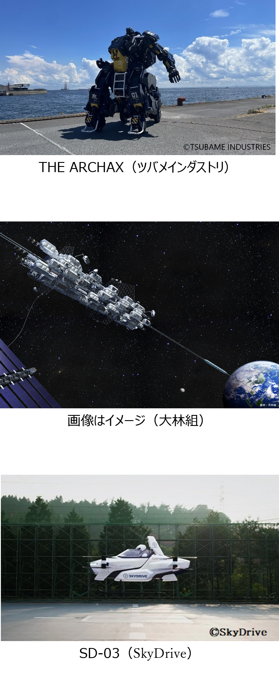 FOMM、Japan Global Association、KEAN Health、LED TOKYO、LEP、MPLUSPLUS、playknot、Preferred Robotics、RDS、SkyDrive、TANITA、ZMP(アルファベット順)