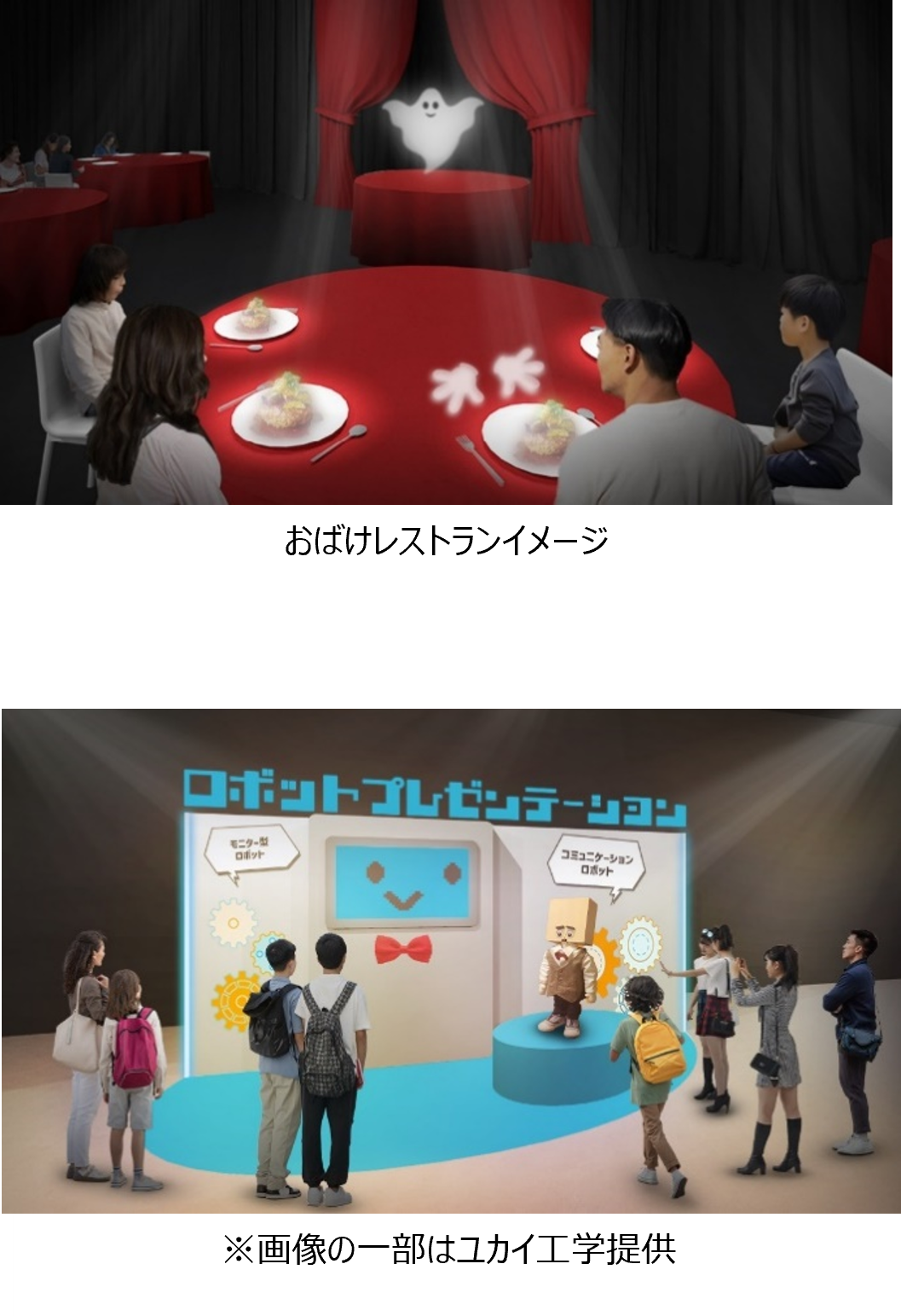 日本科学未来館の「おばけレストラン」企画で投影される食材の実食や、微弱な電流を流すことで塩味が強く感じられる食器「エレキソルト」の体験イベントなどを行います。