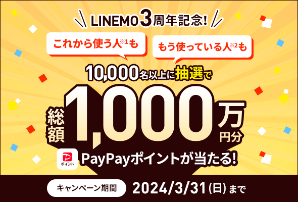 【「LINEMO3周年記念キャンペーン」も実施中!3/31まで!】