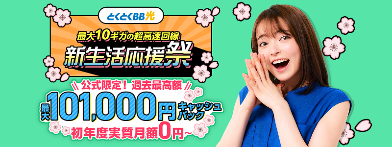 また、「GMOとくとくBB光」では、最大101,000円キャッシュバックするキャンペーン『超高速回線 新生活応援祭』を2024年3月1日(金)より実施しています。