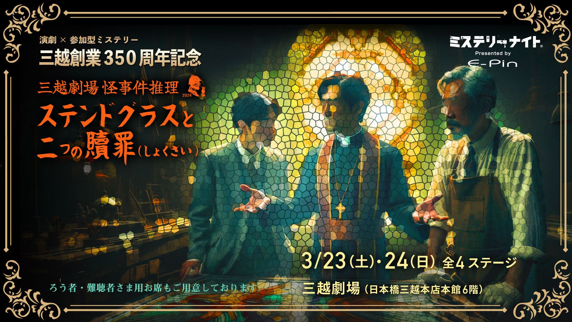 ⑦3月に行われた三越創業350周年記念「三越劇場怪事件推理『ステンドグラスと二つの贖罪』」では、ろう者様専用席もご用意。