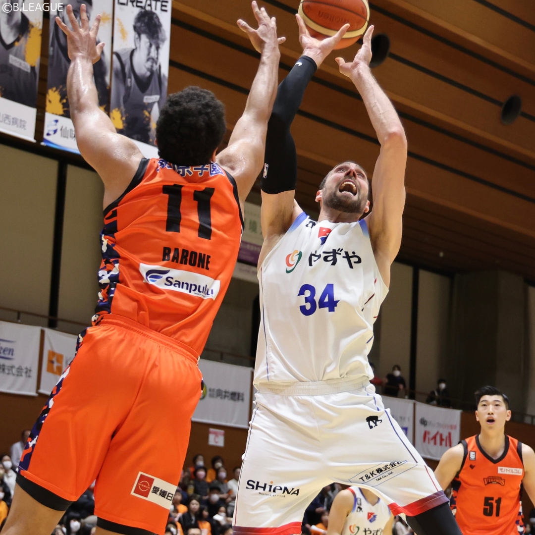 本日も難しいゲームになりました。前半はとても安定したバスケットが出来ていたと思いますが愛媛が 論理的にバスケットの部分で修正され、古野選手は高いクオリティーでプレーしていましたしフェルペス選手も得点を伸ばしていました。