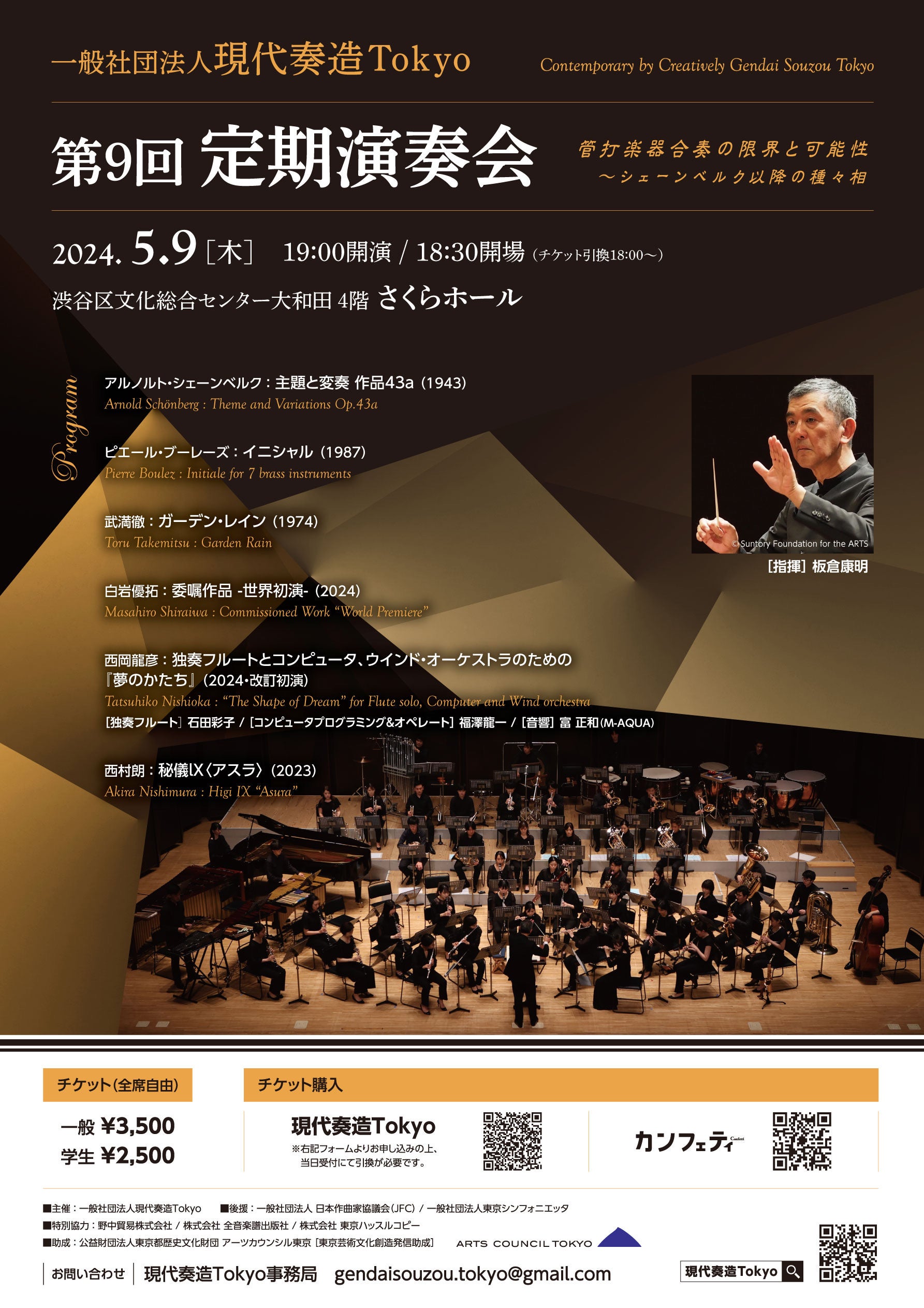 同時に関係の深かった故西村朗の最後の吹奏楽曲、また初の試みとして西岡龍彦による吹奏楽とエレクトロニクス作品で新たな地平を切り開く。