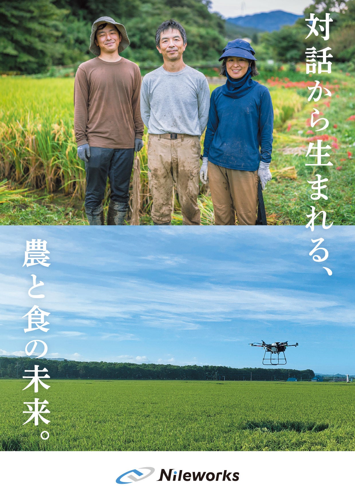 北海道 空知営業所に拠点を構えるナイルワークスだからこそ、農業従事者の声に耳を傾け、農家の皆様と一緒に未来を描いていきたいという思いがあります。ナイルワークスは日本の食を支える北海道の農業に貢献できるよう邁進してまいります。