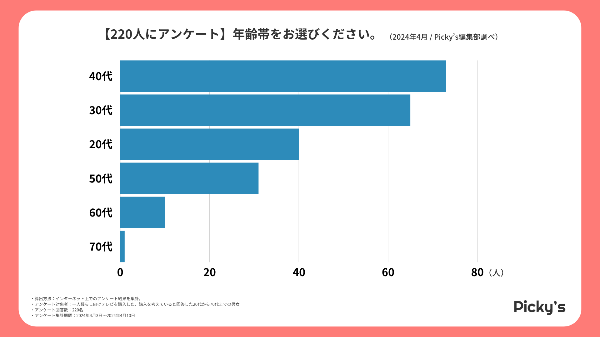 調査対象:一人暮らし向けテレビを購入した、購入を考えていると回答した20代から70代までの男女