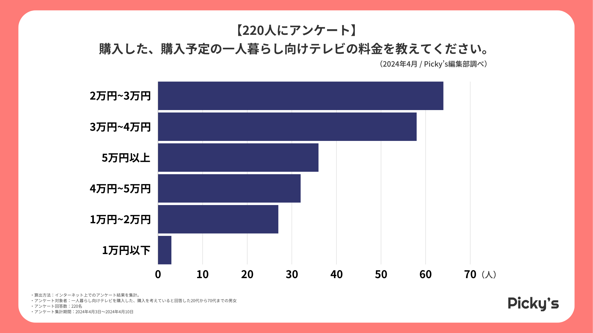 全体の約半数の方が2~4万円の一人暮らし向けテレビを選んでいることが分かります。