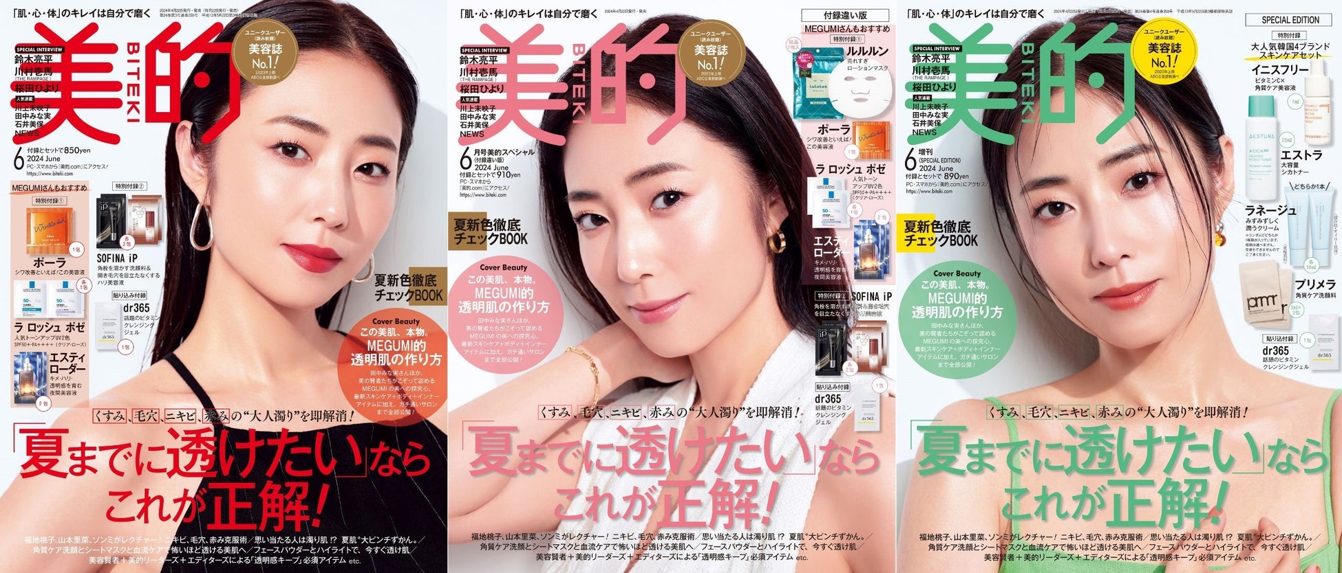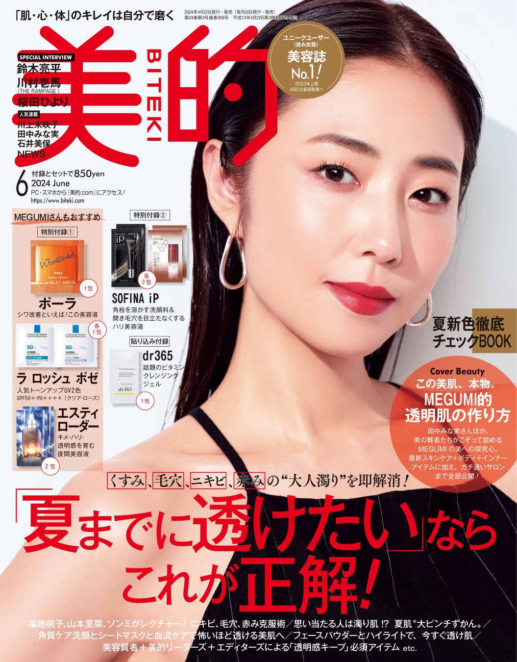 MEGUMIさんの最新美容に迫る&豪華付録満載の『美的』6月号は、4 月2 2 日(月)発売です!