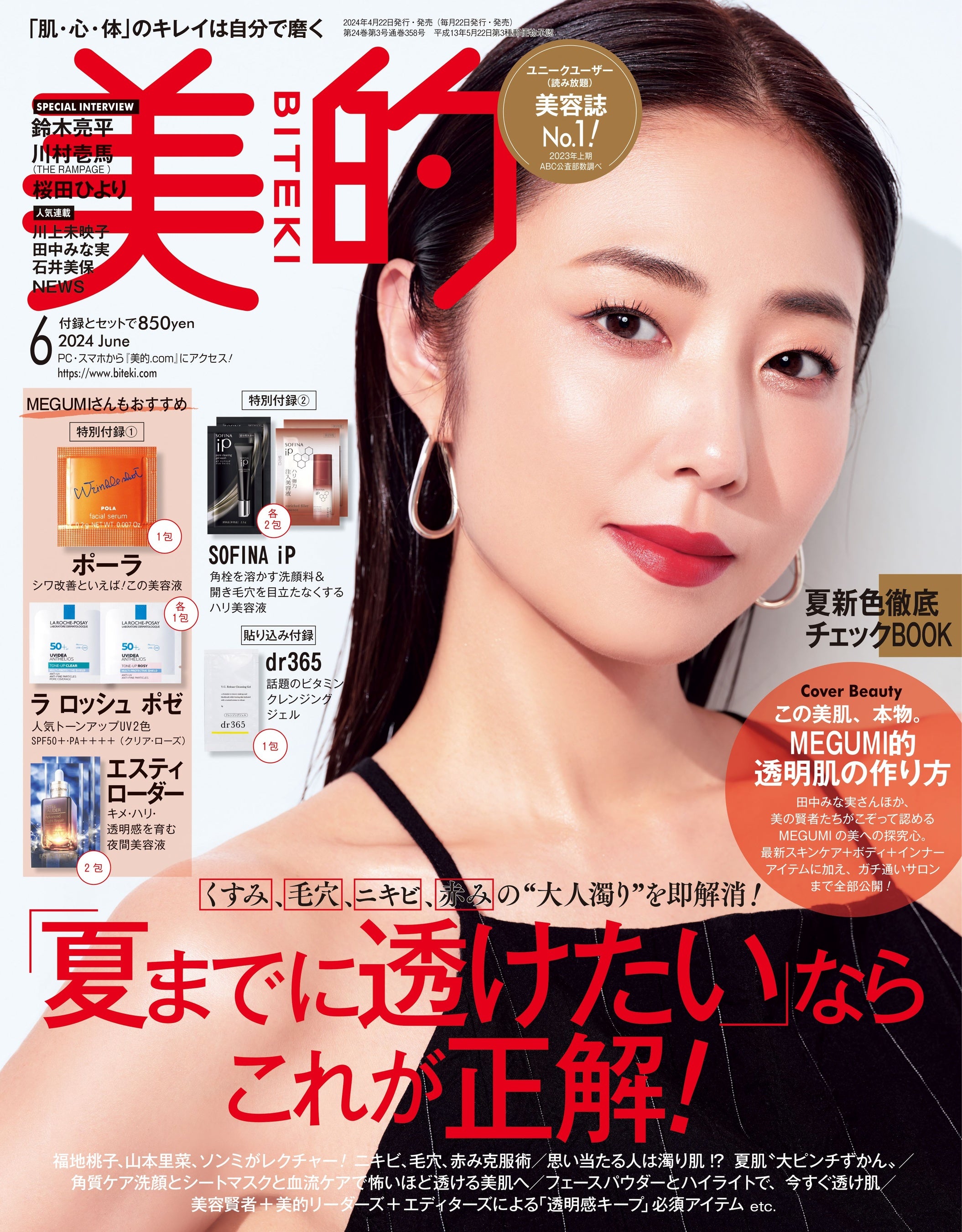 MEGUMIさんの最新美容に迫る&豪華付録満載の『美的』6月号は、4 月2 2 日(月)発売です!