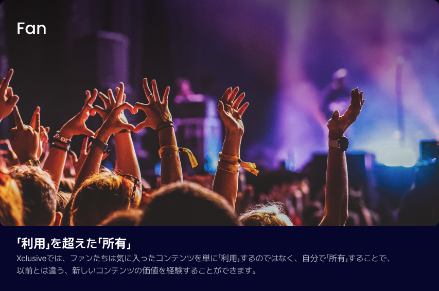 この新たなサービスはクリエイターの権利を守り、持続的に応援することができるサービスだ。ブロックチェーン技術を活用した「Xclusive」はファンダストリー産業に新らな旋風を巻き起こし、業界をリードする存在になるだろう。