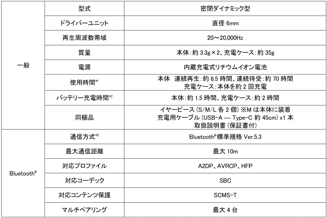 *3 約19.5時間: 本体と充電ケースをフル充電した場合の目安です。再生時間は本体1回分と充電ケース2回分の合計です。