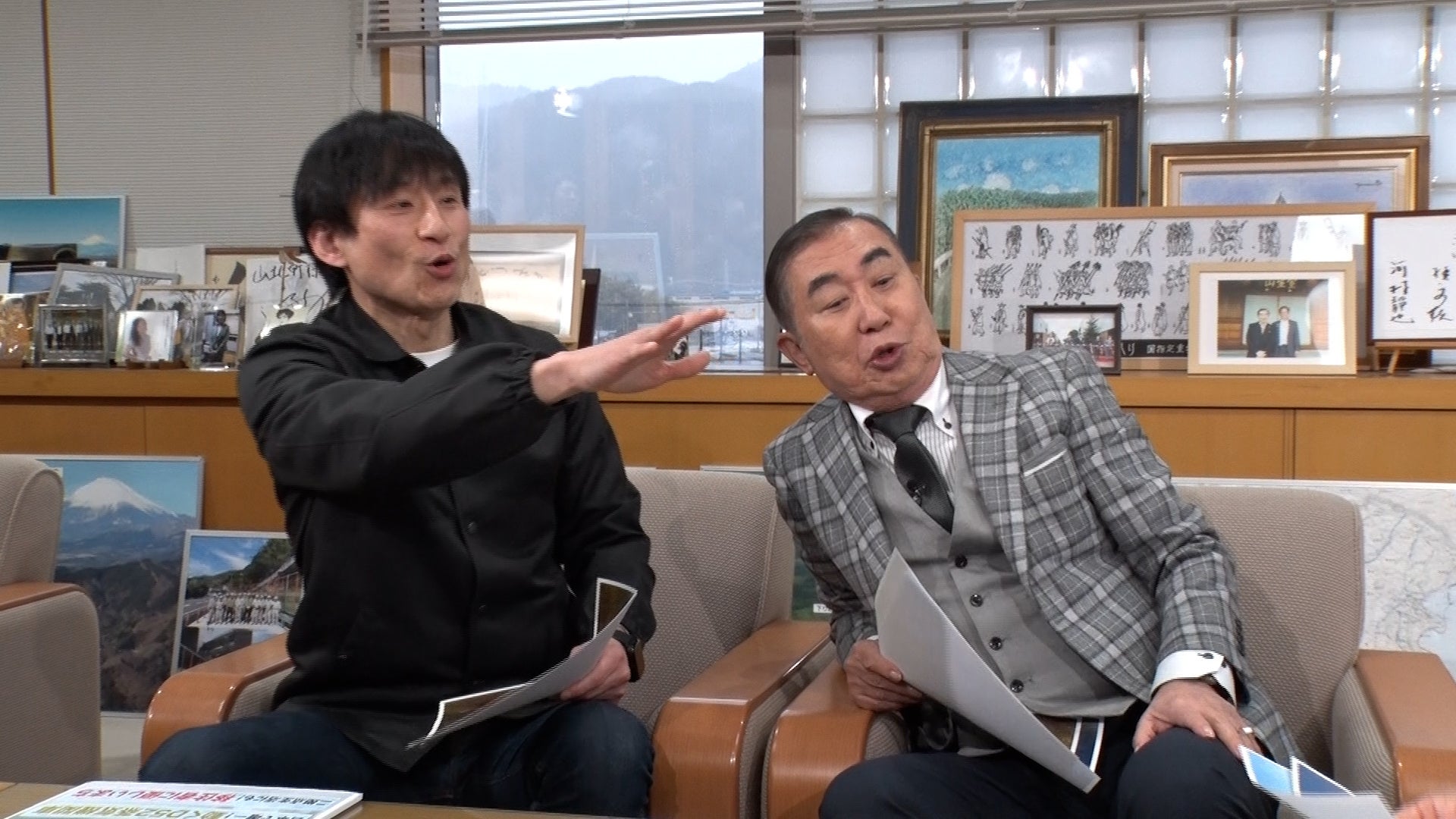 町長は、特におすすめの「丹沢湖」「大野山山頂」「玄倉」から見える富士山の写真を共有。写真を見た文枝は「これだけでも観光スポットですね」とその景色をたたえ、なだぎと富士山に登った際の話などで盛り上がっていました。